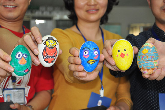 五月五日,立夏。一場生動有趣的畫蛋比賽在總公司辦公區(qū)舉行。分別來自各部門的十多名參賽選手,各人領取一只白色大鵝蛋,用公司提供的水彩筆在蛋上現(xiàn)場作創(chuàng)意畫。現(xiàn)場還邀約員工20名前來觀摩選評。通過民主評選,最終選出了五只創(chuàng)意作品蛋,并頒發(fā)了精美禮品。