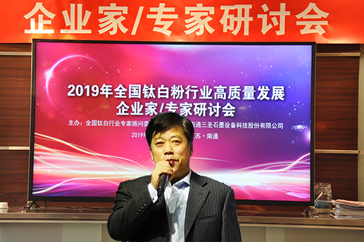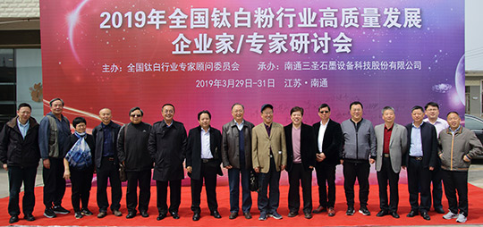 2019年3月29日至31日,2019年鈦白粉行業(yè)高質(zhì)量發(fā)展企業(yè)家/專家研討會(huì)在南通三圣石墨設(shè)備科技股份有限公司召開,全國鈦白粉行業(yè)來自四川、重慶、廣東、安徽、江蘇、浙江、甘肅等省、市的主要鈦白粉企業(yè)的董事長、總經(jīng)理或技術(shù)負(fù)責(zé)人、全國鈦白粉行業(yè)專家顧問委員會(huì)的專家、國家化工行業(yè)生產(chǎn)力促進(jìn)中心鈦白分中心主任、鈦白粉產(chǎn)業(yè)技術(shù)創(chuàng)新戰(zhàn)略聯(lián)盟理事長等近三十位企業(yè)家、專家、領(lǐng)導(dǎo)齊聚南通,聚焦鈦白粉行業(yè),共謀高質(zhì)量發(fā)展。