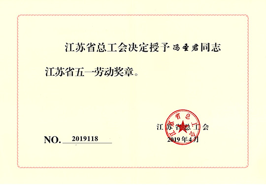 三圣集團馮圣君董事長榮獲“江蘇省五一勞動獎?wù)隆睒s譽稱號