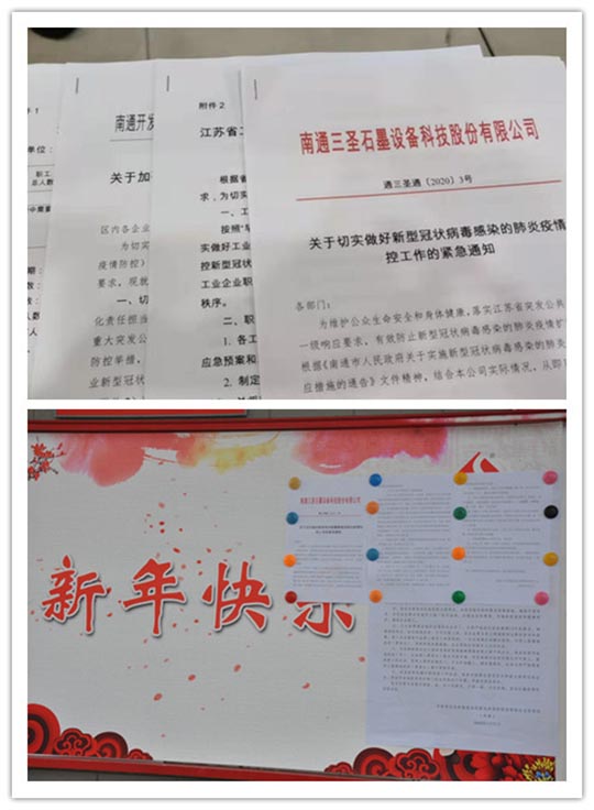 2020年伊始,在這場沒有硝煙的抗疫戰(zhàn)斗中,億萬中國人民團結一心、同舟共濟,眾志成城抗疫情。自爆發(fā)疫情以來,三圣企業(yè)集團也立即成立防疫領導小組,緊急召開兩次會議,部署相關防疫工作,嚴格執(zhí)行《南通市人民政府關于實施新型冠狀病毒感染的肺炎疫情一級響應措施的通告》文件精神。