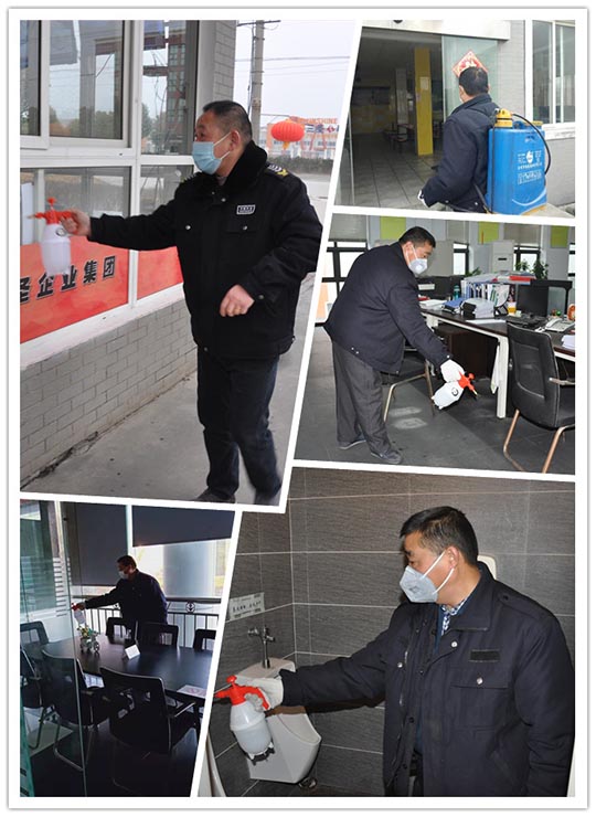 每天對辦公區(qū)、廠區(qū)、公共設施進行兩次消毒工作,積極預防感染,加強空氣的流通,禁止使用空調,嚴格實行分餐制度。