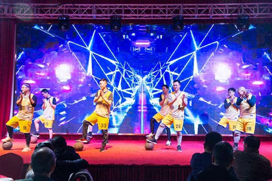 本次年會(huì)由公司內(nèi)部三個(gè)部門聯(lián)合承辦,所有節(jié)目均由承辦部門自編、自導(dǎo)、自演,充分展現(xiàn)了三圣人多才多藝的綜合素質(zhì)和自信向上的精神面貌。帥氣十足的佳佳和優(yōu)雅靚麗的雙雙,這一對(duì)主持搭檔帶給大家耳目一新的開場(chǎng)。隨后上演的一段兵乓球熒光舞,科技感十足的服裝、絢麗的七彩光,配上搞笑夸張的肢體動(dòng)作,子公司艾伯納三圣的節(jié)目征服了在場(chǎng)觀眾。接下來的“灌籃高手”全明星秀,三圣籃球社團(tuán)的部分成員們,在葛教練的指揮下,展現(xiàn)了酷炫嫻熟的運(yùn)球技藝和團(tuán)結(jié)默契的球隊(duì)配合。