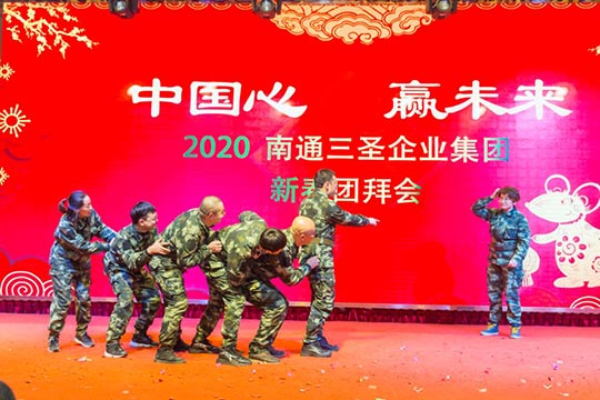 為了弘揚(yáng)體育健身精神,本次年會(huì)上凸顯對(duì)“體育強(qiáng)則中國(guó)強(qiáng)”的高度關(guān)注:曾參加今年“南通國(guó)際馬拉松”賽事的三圣健將們,高舉國(guó)旗、彩球,插上雙翼、身披戰(zhàn)袍,用自己的特殊方式,威風(fēng)凜凜地依次入場(chǎng);彩虹跑小組成員也自信亮相,搞怪機(jī)靈的鼠大哥帶著鼠弟鼠妹接過豬師兄的接力棒開啟了2020新大門,合唱合舞燃爆現(xiàn)場(chǎng)。