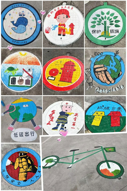 這一場別開生面的涂鴉大賽,為三圣園區(qū)添上一抹絢爛的色彩。隨處可見煥然一新的井蓋,是我們用畫筆和色彩繪制出的一道道亮麗風(fēng)景線,也是對加強安全環(huán)保意識及節(jié)能減碳的美好期許!
